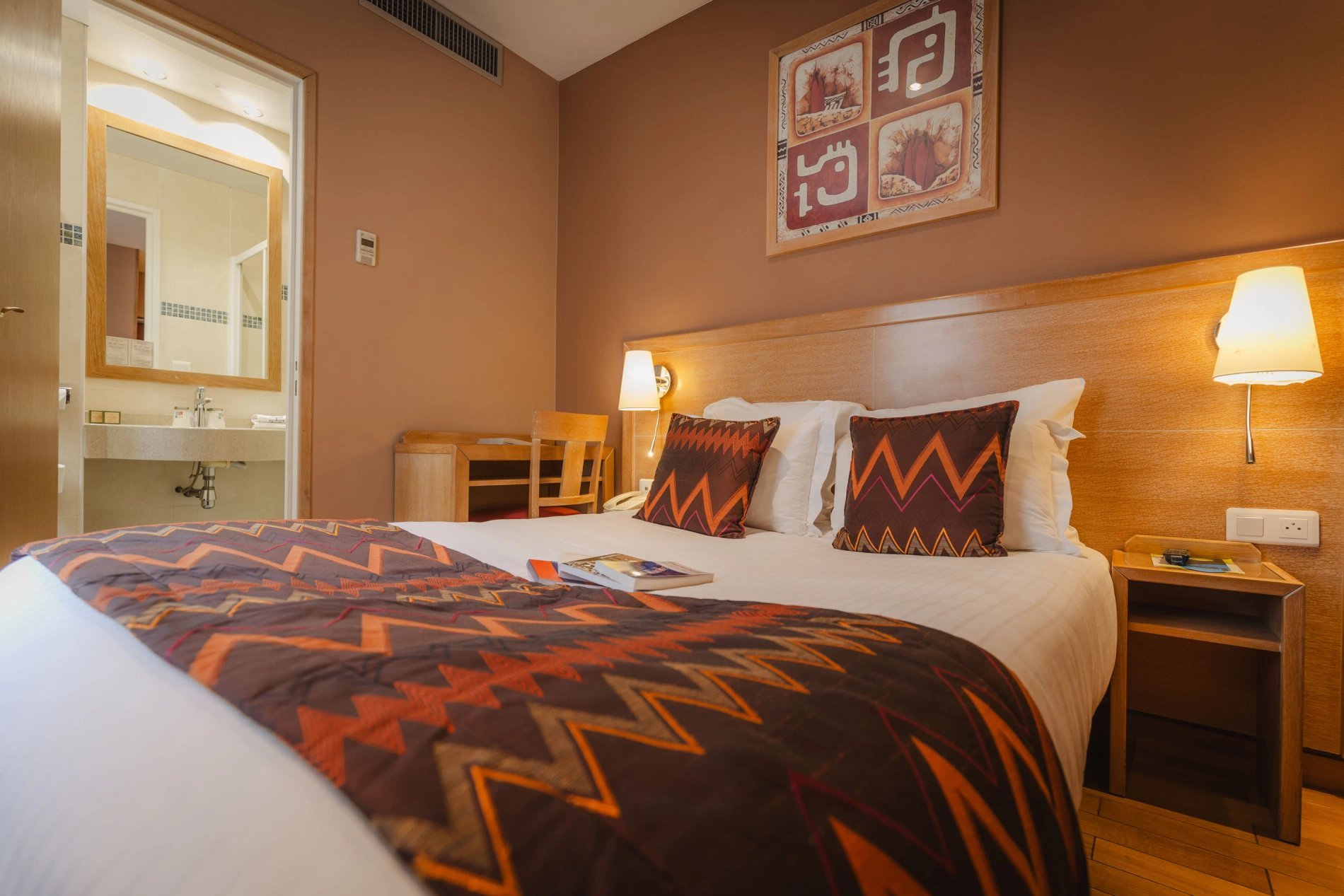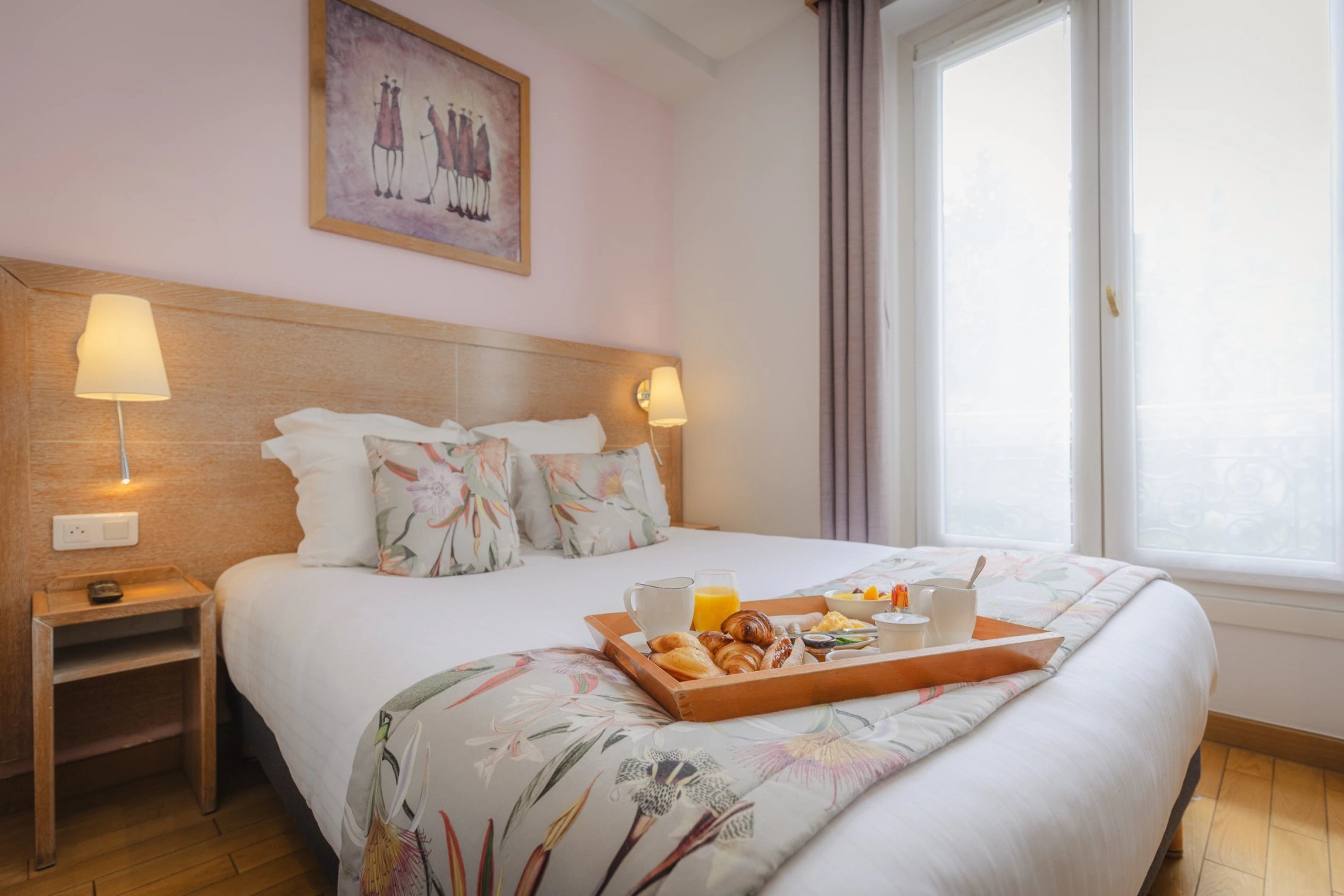 L'excellence du service français s'exprime au quotidien à travers notre équipe bilingue disponible 24h/24 et notre petit-déjeuner aux saveurs authentiques. Croissants dorés, pains au chocolat et baguette croustillante composent chaque matin un réveil gourmand dans la plus pure tradition parisienne.